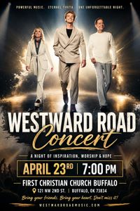 121 NW 2nd StreetWestward Road is a dynamic family trio blending gospel and modern worship in a way that connects with people of all ages. Led by worship leader and songwriter Scott Roberts, alongside award-winning vocalist Kelli Roberts and their son Garrett, their music brings a message of hope, encouragement, and trust in God.